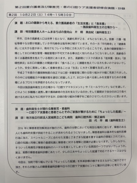 要介護者及び障害児・者の口腔ケア支援者研修会